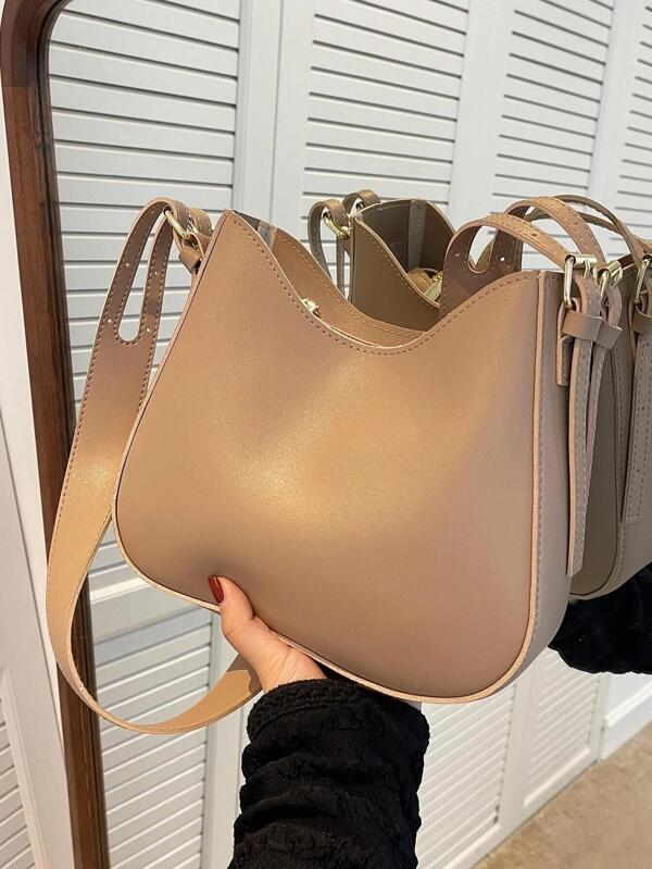 Minimalist Shoulder Hobo Bag, Women's Solid Color Crossbody Bag, Simple Zipper Handbag